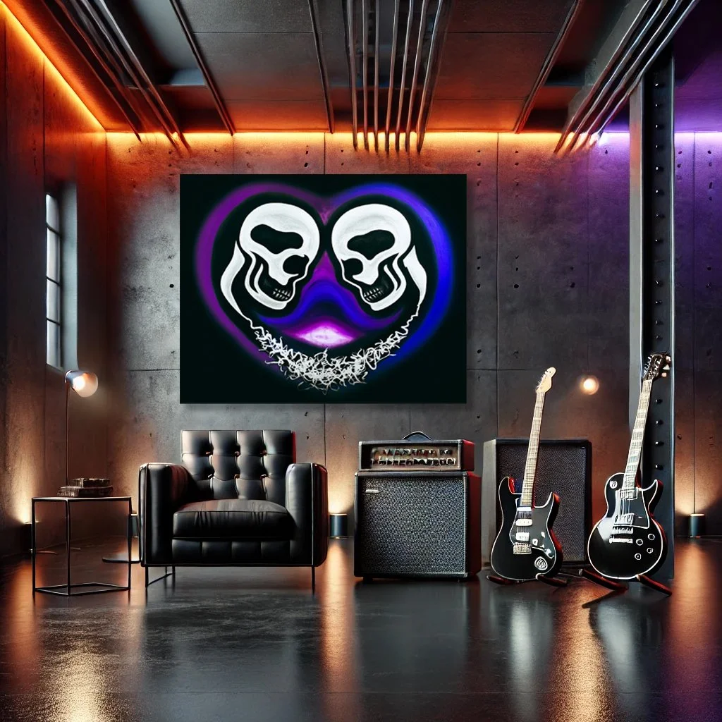 Hvert verk er navngitt etter ikoniske låter, som en hyllest til musikerne og energien i musikken. Maleriene balanserer det estetiske med tematisk dybde, og inviterer deg til å utforske menneskets følelser, styrke og sårbarhet. Med sterke kontraster og rå symbolikk gir kunsten en opplevelse som er like intens som musikken den er inspirert av.